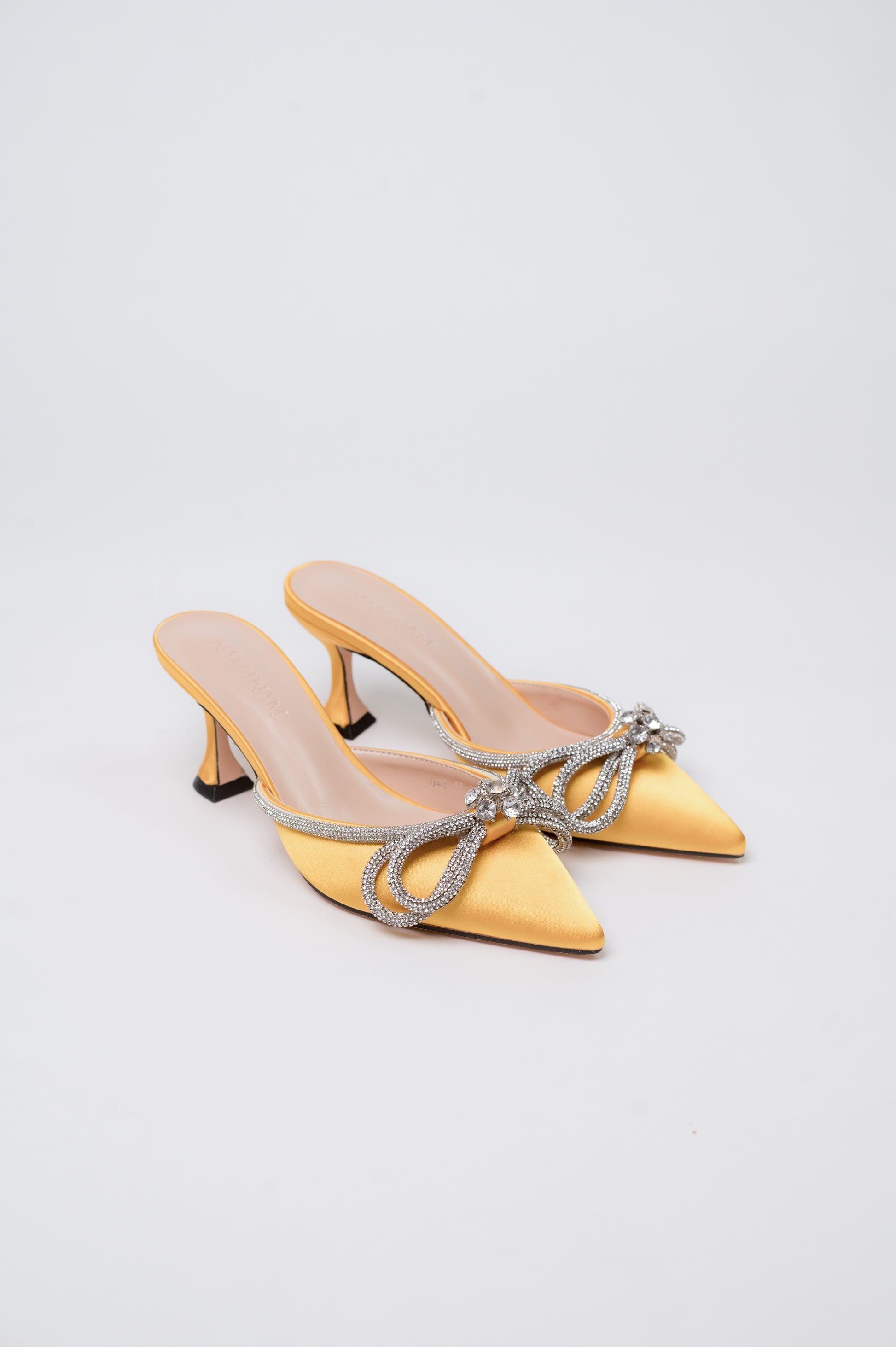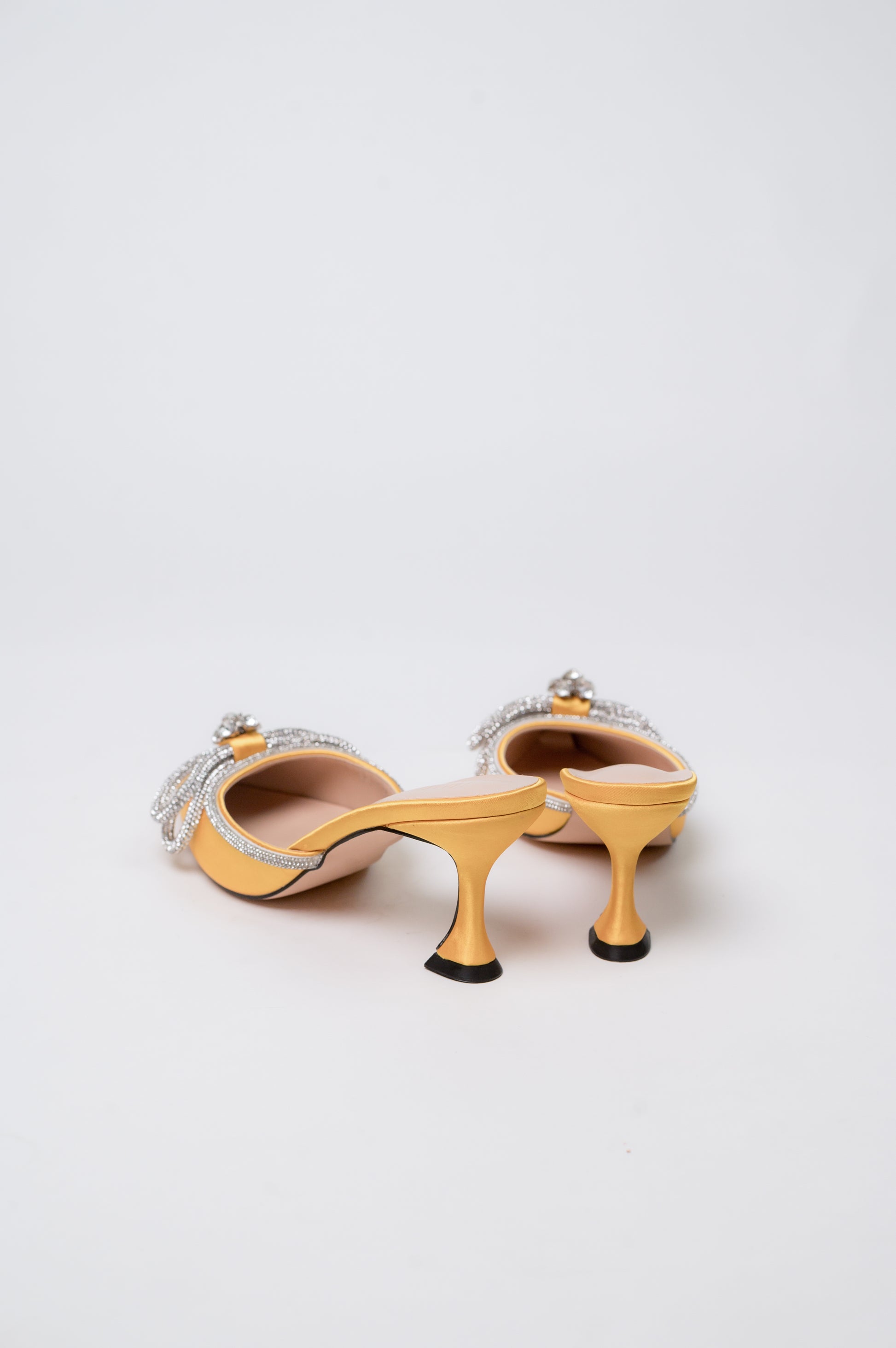 Gemini Ribbon Heeled Mules Yellow