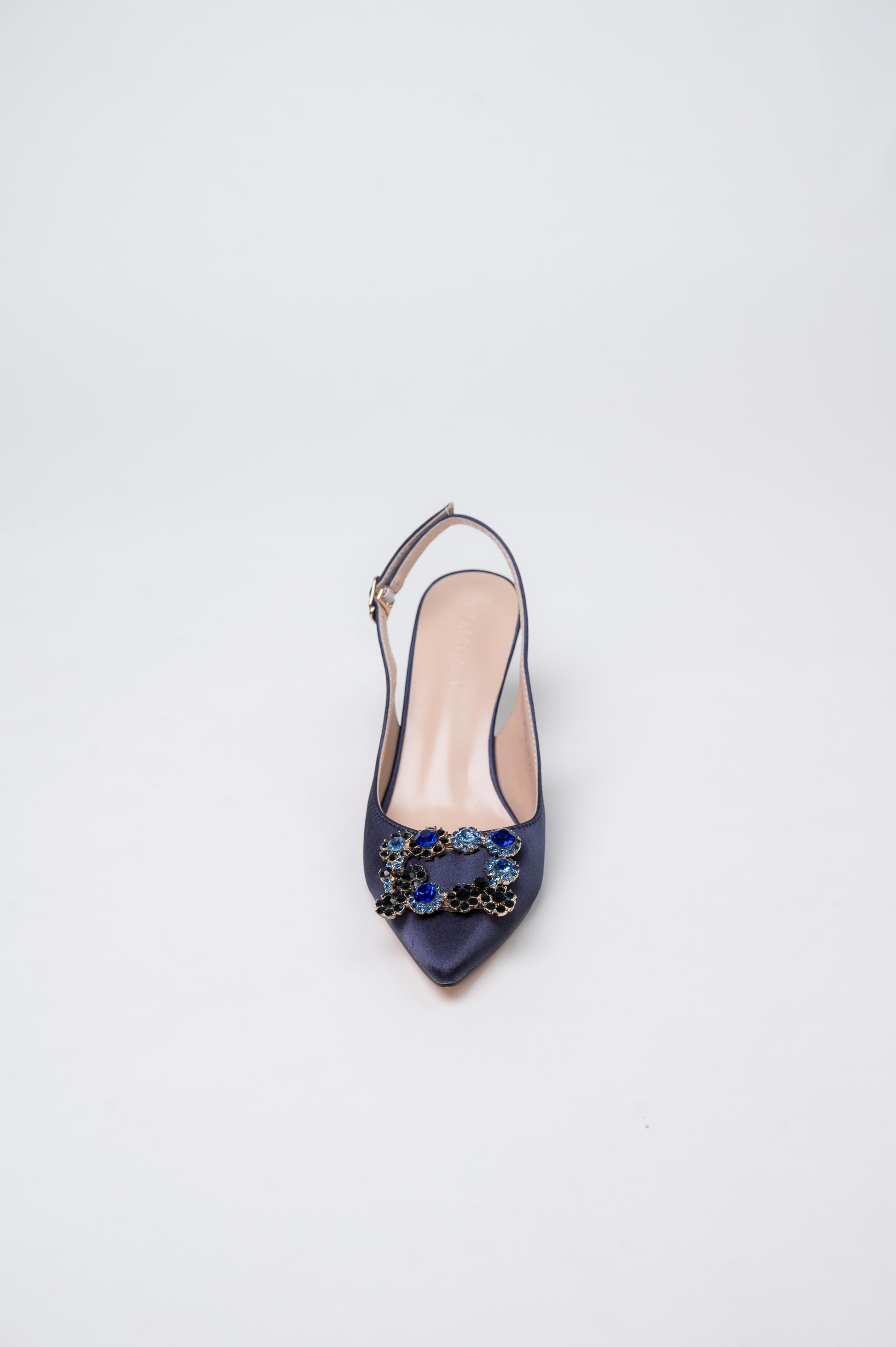 These slingback heels are all about luxury and sparkle. Featuring a pointed toe and a crystal-flower buckle, they add a touch of glam to any outfit.