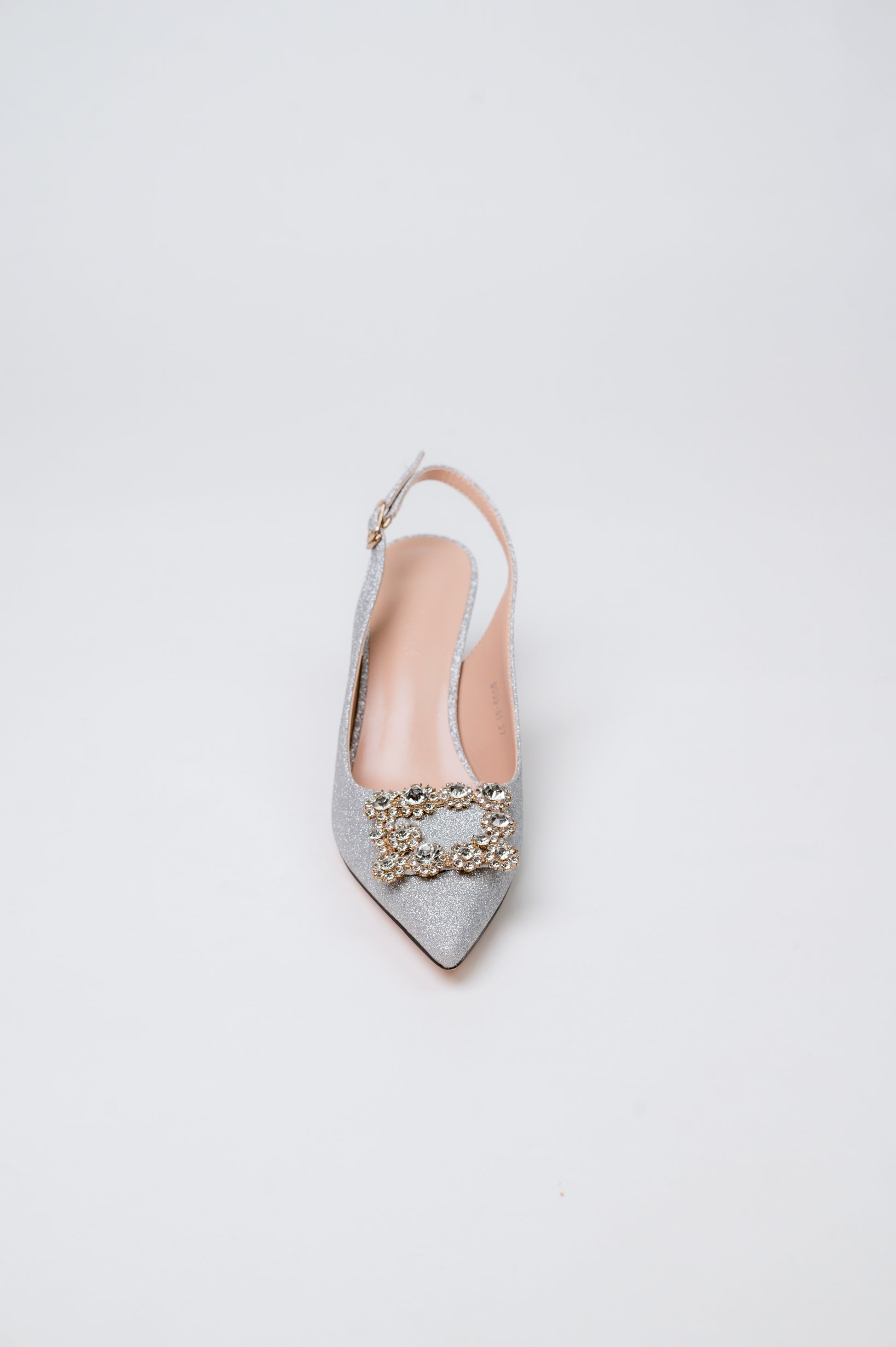 These slingback heels are all about luxury and sparkle. Featuring a pointed toe and a crystal-flower buckle, they add a touch of glam to any outfit.